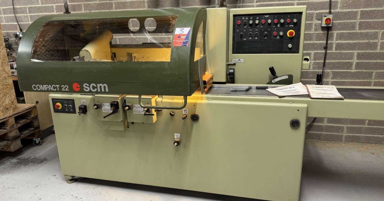 The auction featured 141 lots of specialist woodworking machinery, tools, and equipment, including an Esseteam Sprint NM 3 Axis CNC Router, Casadei Linea Beam Saw, SCM Compact 22 4-Sided Planer Moulder, SCM M3 Multi Rip Saw, 2014 Griggio Hot Melt Edgebander, Felder FBP 50 Wood Chip Briquetting Press, Wadkin Bursgreen BEL Spindle Moulder, and a Halla HDF20 Diesel Forklift Truck.