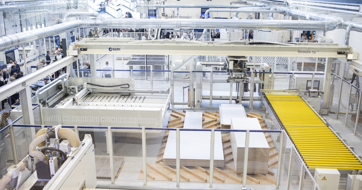 An Integrated Sizing and Nesting Cell for Batch 1 production will be presented at the event. Combining advanced automation, operational flexibility and reduced energy consumption, the cell is composed of: