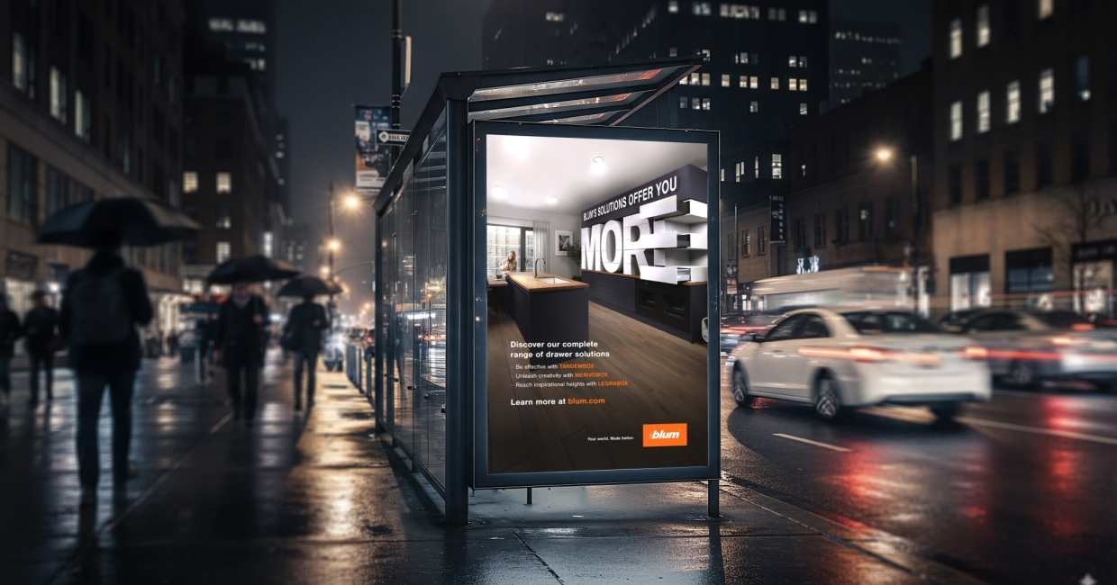 Krystyna Threlfall, Marketing Manager for Blum UK commented: “We’re excited to launch this campaign in a way that’s completely new for Blum. With our bold ‘More Than a Drawer’ message, we’re investing in Out of Home advertising to achieve high visibility and ensure a strong presence in key busy locations.”