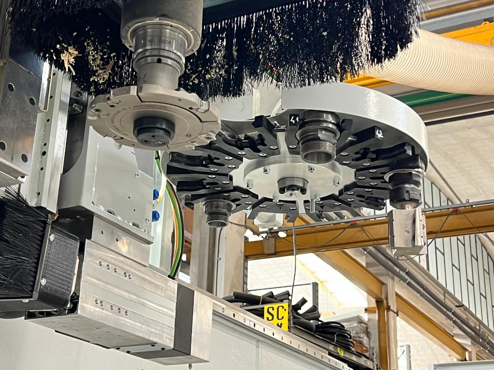 Equipped with a powerful 12 kW electrospindle, the machine is built to handle demanding machining operations with ease, from hinge recesses and lock mortises to slots, profiling, decorations and all hardware preparation.