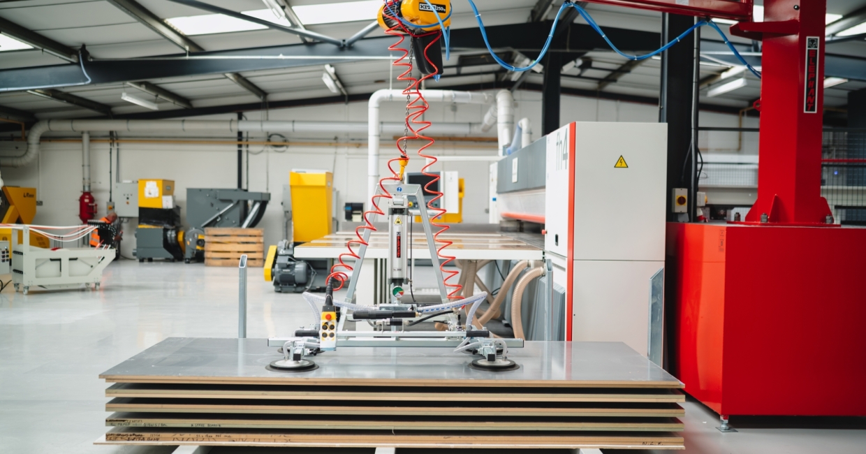 “Elephant lifting devices are exceptionally dynamic,” explains Andy Hepworth, Sales Manager at IMA Schelling UK. “They can be customised to work with virtually any panel size, weight or application, making one-person operation when loading large or heavy panels onto a machine bed, like a Schelling FH4 beam saw or CNC router, a reality.
