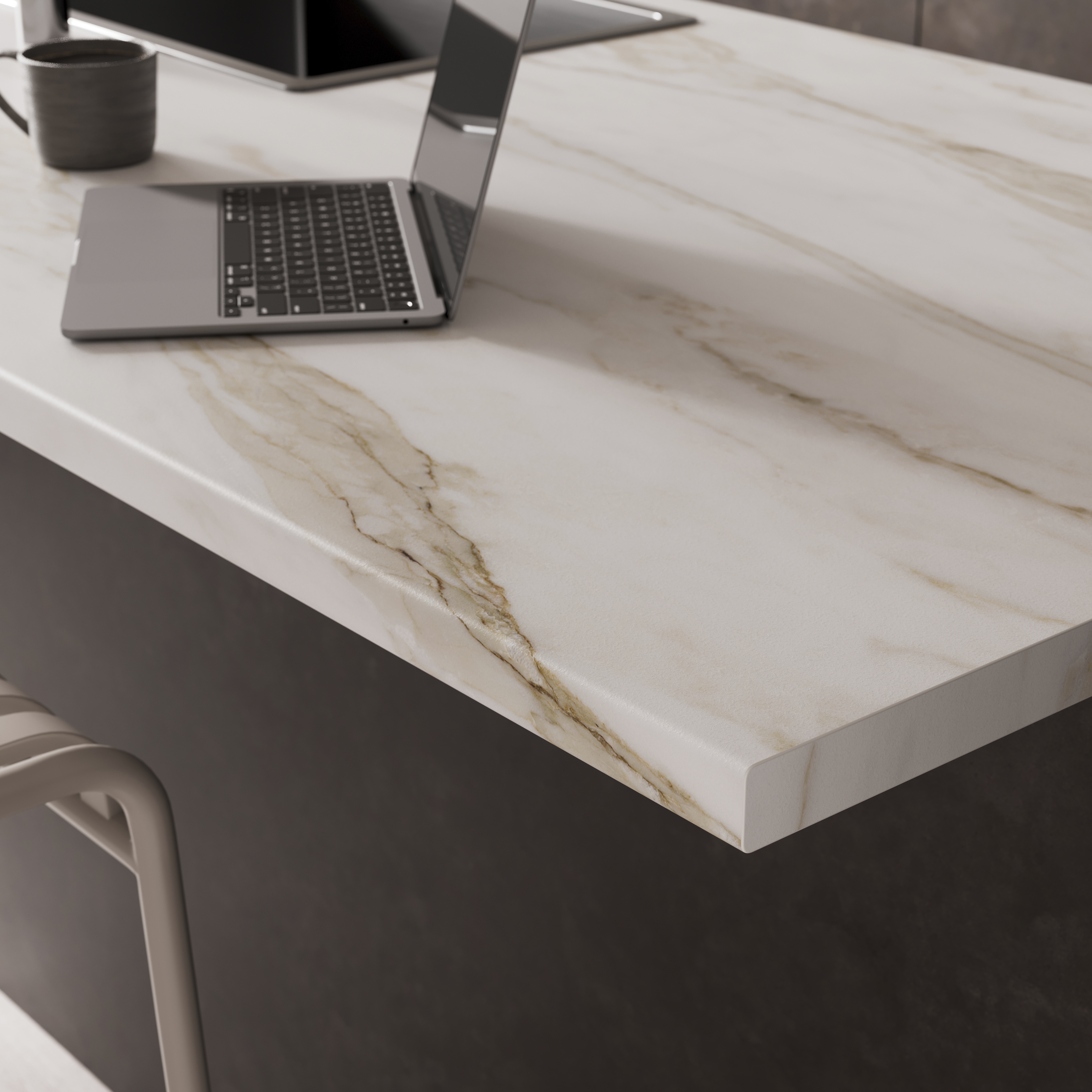 The range of ultra-thin, Slim Line worktops include eight bold marble monochromes, burnished slate and matt textured décors with improved resistance to abrasion and moisture. Choose from Slim Line 12mm profiles with complementary coloured cores, repeat-free digital designs, with matching upstands and splashbacks across the range.