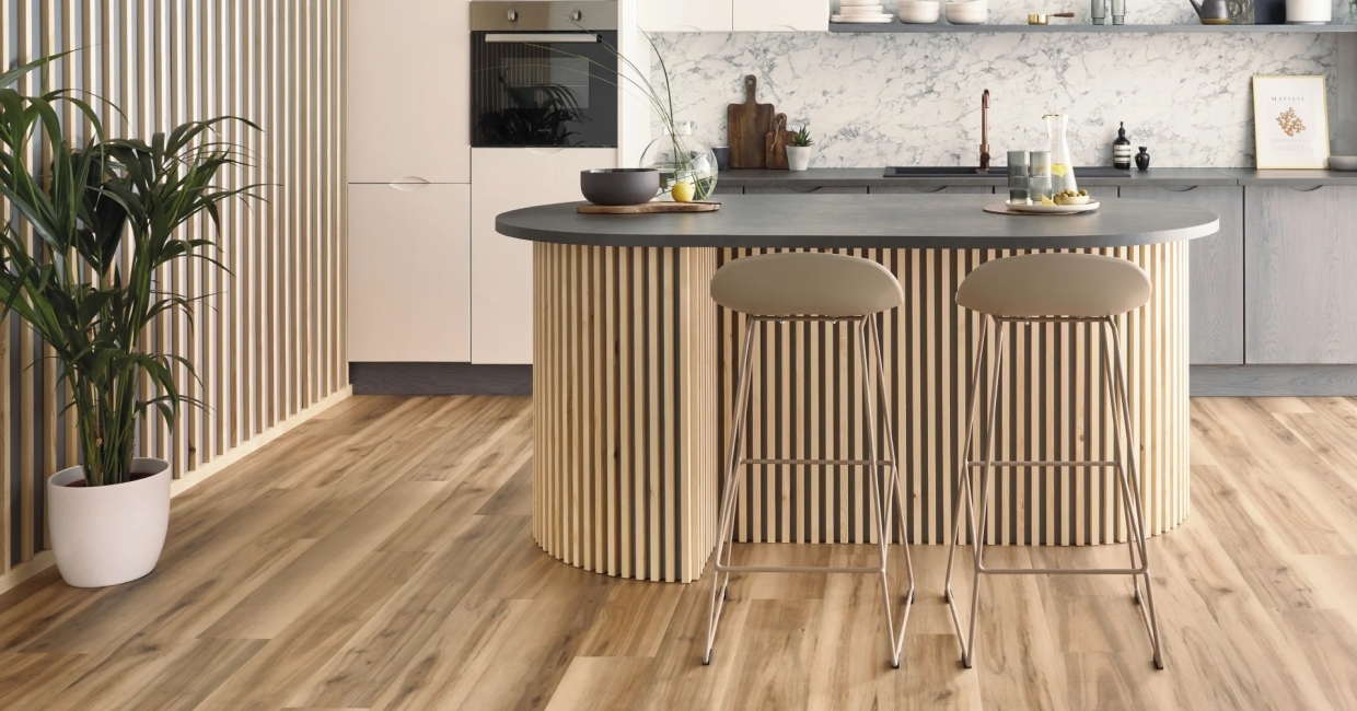 All décors feature highly realistic designs that look just like the wood and stone materials they’re inspired by – all benefiting from the durability and resilience of luxury vinyl that is scratch resistant, easy to clean and maintain, quiet underfoot and warm to the touch. They are: