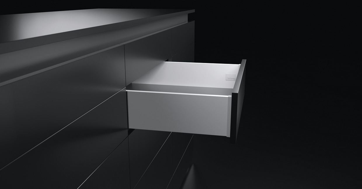 The new Tekform Slimline+ drawers are fully compatible with the Tacto 2.0 push-to-open system, making them particularly attractive for contemporary furniture designs featuring handleless drawers.