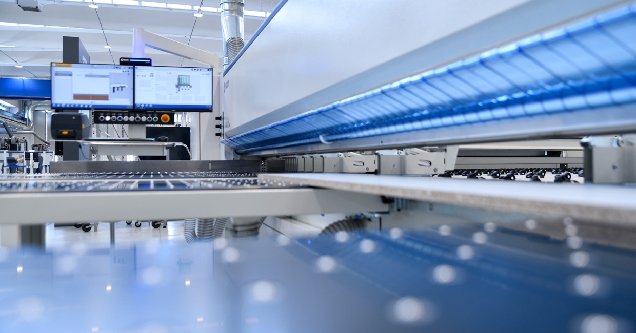 LED indicators of both front and rear loading in the presence of lifting table: an intelligent led bar system guides the user during the processing stages for intuitive and safe production monitoring. In the version with the lifting table, the system guides the user to the correct forklift loading of the panel stack and signals the need for a stack change.