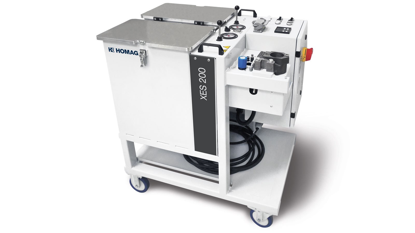 Supporting the entire range, the XES 200 service station simplifies the handling of PUR and EVA glue systems. It manages glue application unit storage, preheating, and automatic cleaning to extend component life and reduce downtime.